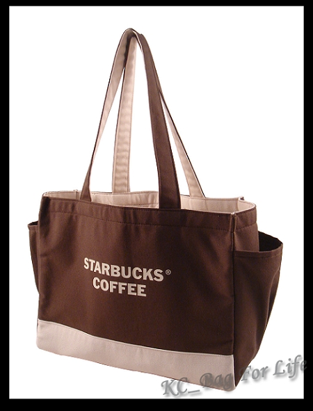 袋型設計可雙面使用,並貼心加入兩側的收納袋,可放進隨行杯 或是摺疊雨傘。